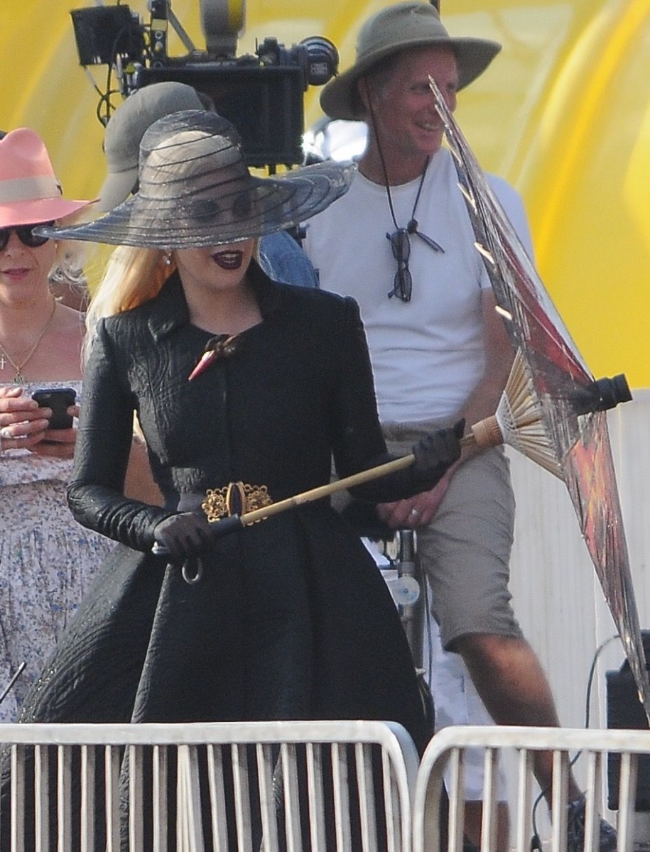 Η Lady Gaga φόρεσε τα μαύρα, πήρε μια ασορτί ομπρέλα για τον ήλιο, έπιασε και ένα παιδάκι από το χέρι και βγήκε βόλτα στην παραλία της Santa Monica. Όλα αυτά για την 4η σεζόν του American Horror Story!